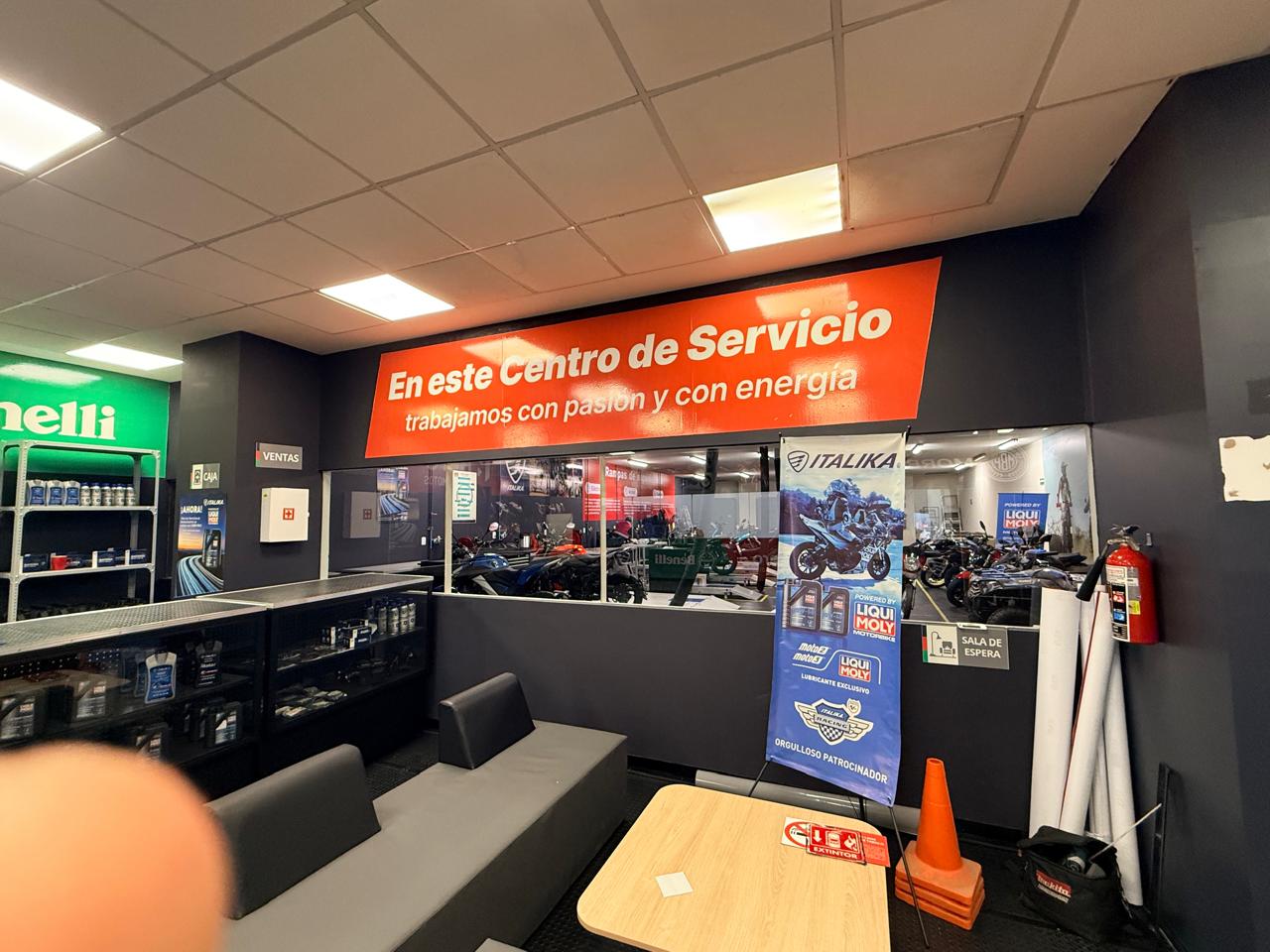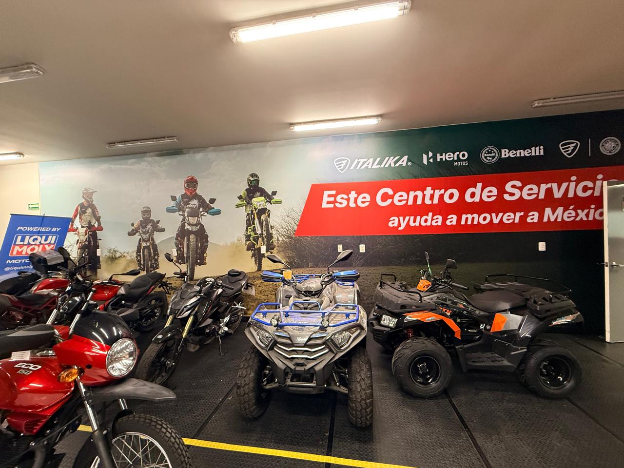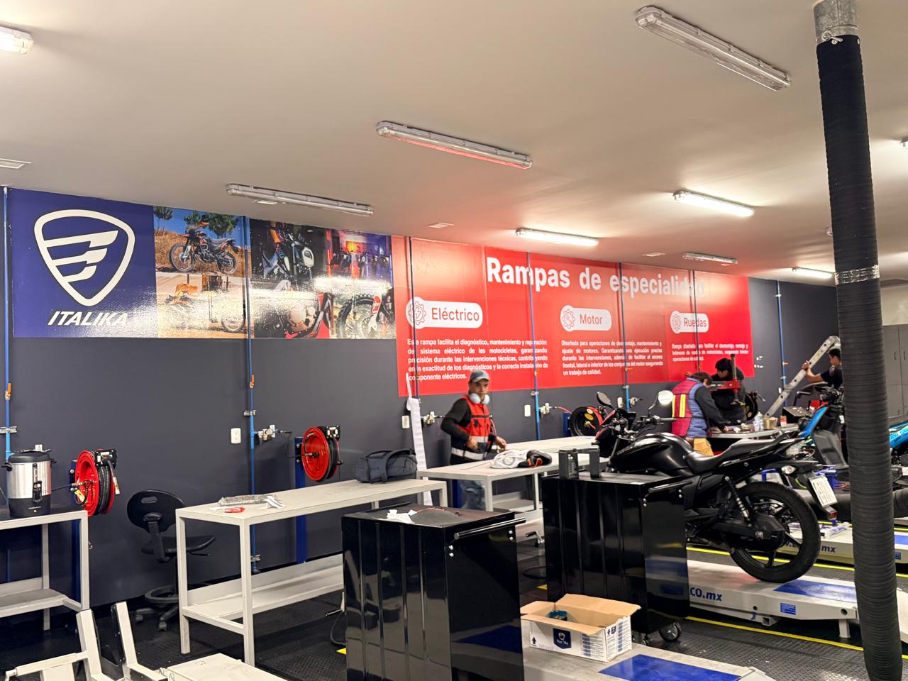 En las áreas operativas, murales fotográficos de alto impacto muestran motociclistas en acción, reforzando el mensaje "Este Centro de Servicio ayuda a mover a México".