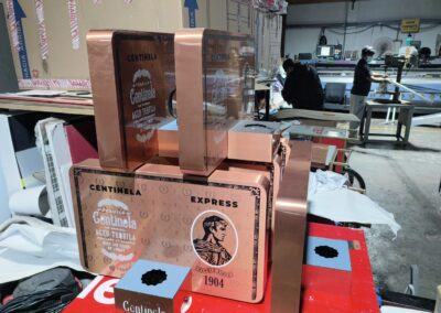 Tequila Centinela, una marca con más de 120 años de tradición, necesitaba destacar sus botellas en puntos de consumo como bares, restaurantes y tiendas especializadas. El reto era triple: crear glorificadores que reflejaran el prestigio de la marca, ofrecer variedad de modelos para diferentes espacios y presupuestos, y lograr piezas lo suficientemente llamativas para competir visualmente en anaqueles saturados de opciones. Además, requerían distintas líneas de exhibidores que comunicaran tanto la herencia histórica de la marca (fundada en 1904) como una imagen moderna y premium.